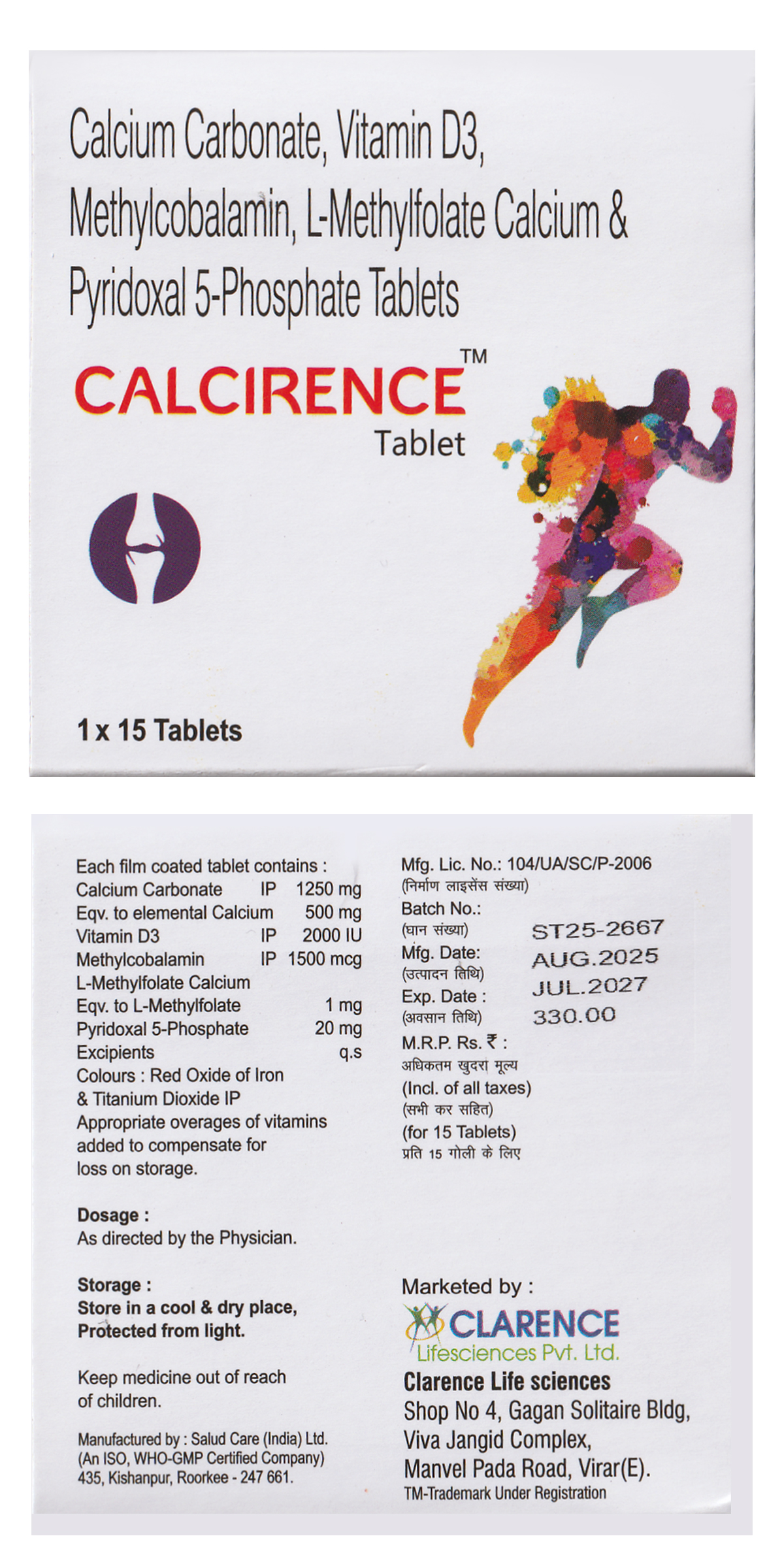 (Calcium Carbonate 1250 mg, Vit D3 2000 IU, Methylcobalamin 1500 mcg, L-Methylfolate 1000 mcg, Pyridoxal 5 Phosphate 20 mg Tablet)